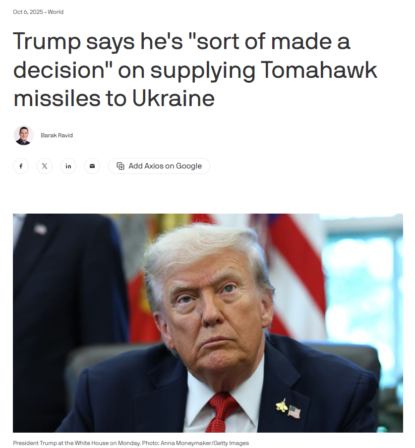 俄罗斯总统普京强调,如果美国向乌克兰提供包括“战斧”在内的远程精确打击武器装备,虽不至于改变战场形势,但将破坏俄美之间的关系,至少会破坏俄美关系刚刚出现的积极势头。正因如此,特朗普对此表态时留有余地。